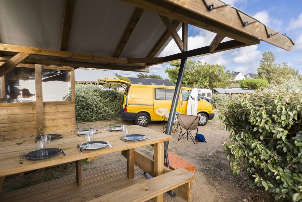 Chaque emplacement électrifié est occupé par une table extérieure idéale pour y prendre votre petit-déjeuner en famille. Adaptées au contexte sanitaire actuel, vous adorerez nos Freecamps, équipements premium pour votre séjour en emplacement nu dans la petite cité de caractère de Batz-sur-Mer.